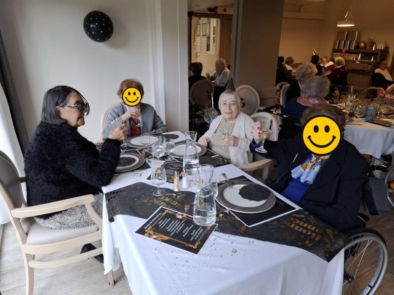 Les résidents ont pu savourer un repas festif, accompagné de champagne, pour trinquer ensemble à la nouvelle année.