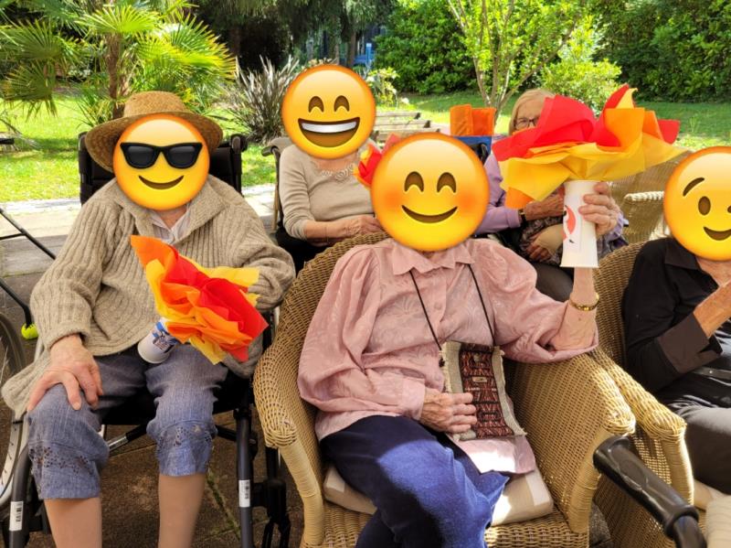 Afin de décorer les tables de la salle de restauration pour les futurs Jeux Olympiques d’Arpège, les résidents ont réalisé au cours de cette semaine des torches olympiques imaginées par Gabriel, l’animateur remplaçant.
