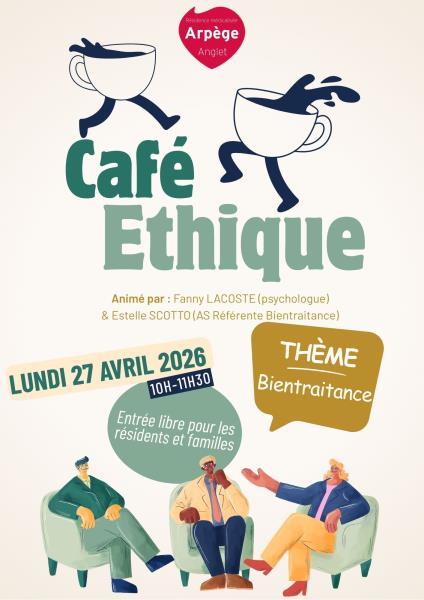 Nous avons le plaisir de vous inviter à un café éthique consacré au thème de la bientraitance, un moment d’échange et de réflexion autour du respect, du bien-être et de la qualité de vie au sein de notre établissement.