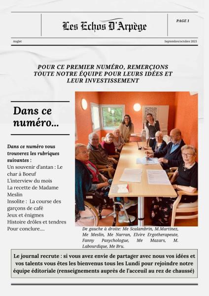 Nous avons le plaisir de vous présenter le nouveau journal de la résidence réalisé par certains de nos résidents et accompagné par Fanny (notre psychologue) et Elvire (notre ergothérapeute).