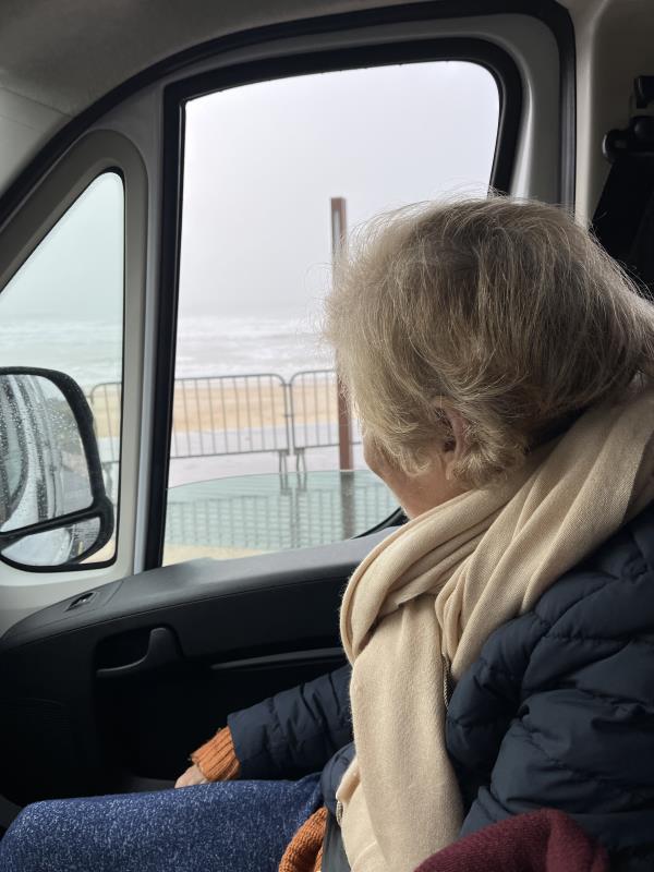 Ce vendredi, nous devions inaugurer l'arrivée de notre camion PMR avec une visite du marché de Noël d'Anglet. Le temps était mauvais, la Tempête Darragh se préparait. Qu'à cela ne tienne, nous avons maintenu la sortie et avons proposé aux volontaires d'aller observer l'océan !
