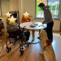 Publiée le 27/04/2024En cette fin de semaine, les résidents ont eu la visite de Sophie, Naturopathe et Biscuit son fidèle assistant à 4 pattes. Un assistant attendu et très apprécié de nos résidents ! Durant un atelier d’une heure autour des plantes qui font la saison, le Sureau (sec, mais aussi frais) a entre autres ét&eacu [...] Lire la suite