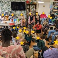 Publiée le 27/03/2024Ce matin, nous avons reçu les jeunes accompagnés par la plateforme MNA64 de l'institut Don Bosco, ainsi que les petits du centre de loisirs Baroja. Les échanges se sont concentrés autour des "contes d'ici et d'ailleurs" et ont été très riches et variés. Alya, jeune guinéen, no [...] Lire la suite