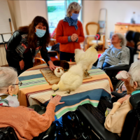 Publiée le 21/02/2022La semaine dernière, de la médiation animale a été proposée par l'une de nos intervenantes à nos résidents. Lors de cette séance, les résidents ont pu s'apaiser, se remémorer des souvenirs, trouver du plaisir à s'occuper d’une poule, d'un coq et de 2 cochons d [...] Lire la suite