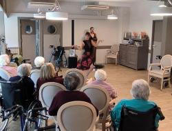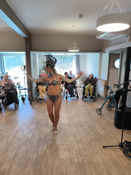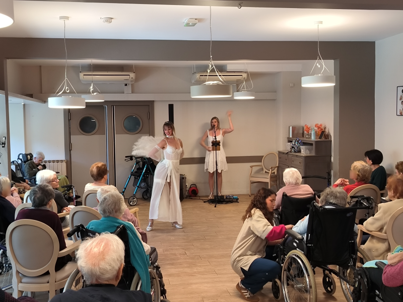 Les résidents, conquis par ce spectacle dynamique et chaleureux, ont participé avec enthousiasme, certains fredonnant les mélodies, d’autres se laissant emporter par le rythme. Sourires, applaudissements et regards émerveillés ont ponctué cette belle animation.