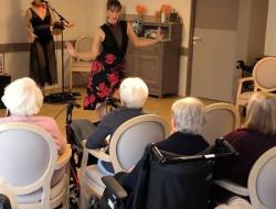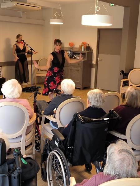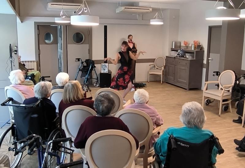 Vendredi après-midi, la résidence a vibré au rythme d’un goûter festif haut en couleurs, offert aux résidents pour leur plus grand plaisir. À cette occasion, une chanteuse, Claudia, accompagnée de Florence, danseuse, ont proposé une prestation riche et entraînante.